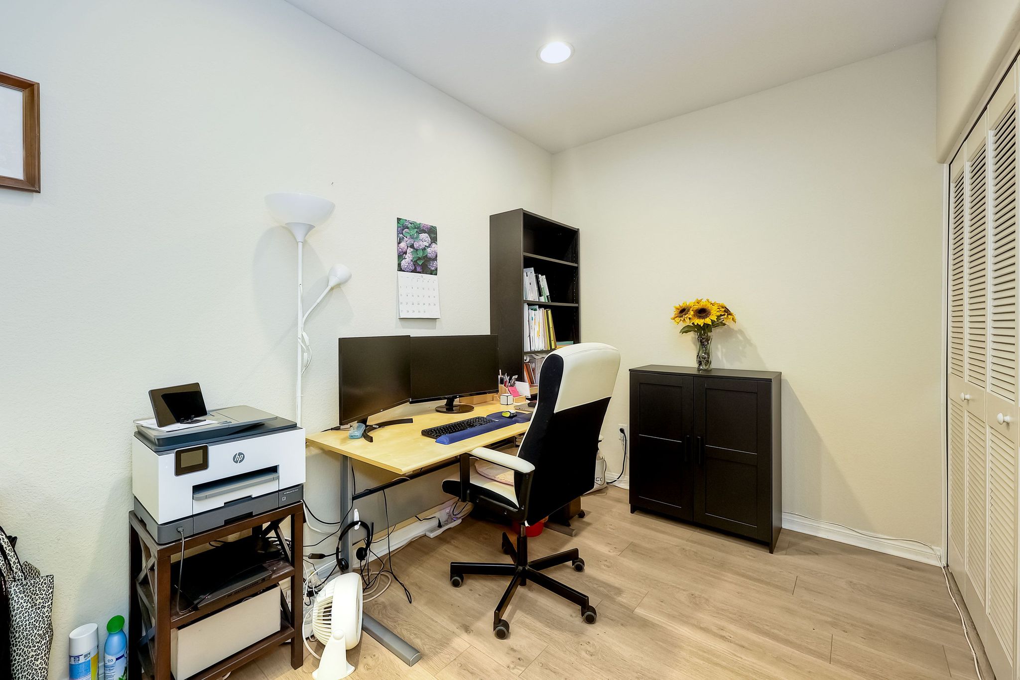 Spacious and meticulously owned 1 bed + den, 1 bath, 900 sqft condo located in the highly desirable community of Pell Place in Carmel Valley. Step inside this light and bright open floor plan featuring upgraded luxury vinyl plank flooring and LED lighting throughout, gourmet kitchen with stainless steel appliances… Read Moreand granite counters, fireplace, spacious balcony, and primary walk-in closet. Optional bedroom/ office space/nursery. Pell Place offers amenities including a putting green, BBQ area and fitness center. This unit also includes 1 garage space and 1 outdoor parking space. It is also the only condo complex in Carmel Valley with an elevator! Very central and walkable location close to freeways, beaches, Carmel Valley recreation center, library, One Paseo & Del Mar Highlands shopping center, top ranking schools including Solana Pacific Elementary School, CVMS, Torrey Pines High School and CCA, dining and more. Don’t miss this rare opportunity for a single level condo in Carmel Valley!Read Less